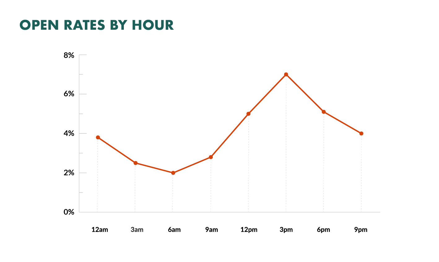 同じ調査によると、購読者は、職場に到着した後の午前10時、または昼食後に受信トレイをチェックしている午後1時にあなたの電子メールを読む可能性が最も高いことがわかりました。
