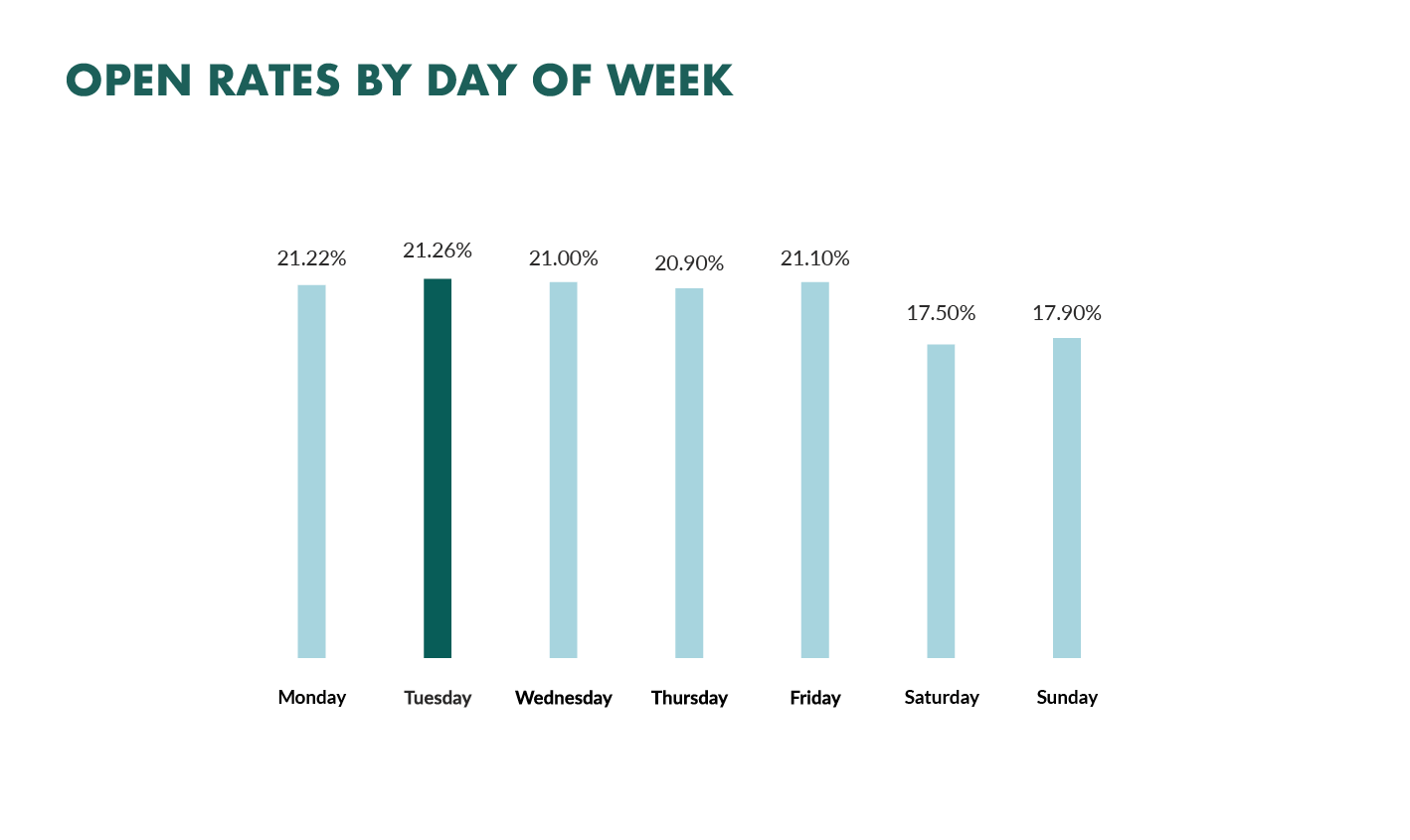 Get Responseの調査によると、最高の開封率を取得したい場合は、火曜日がメールを送信するのに最適な日です。