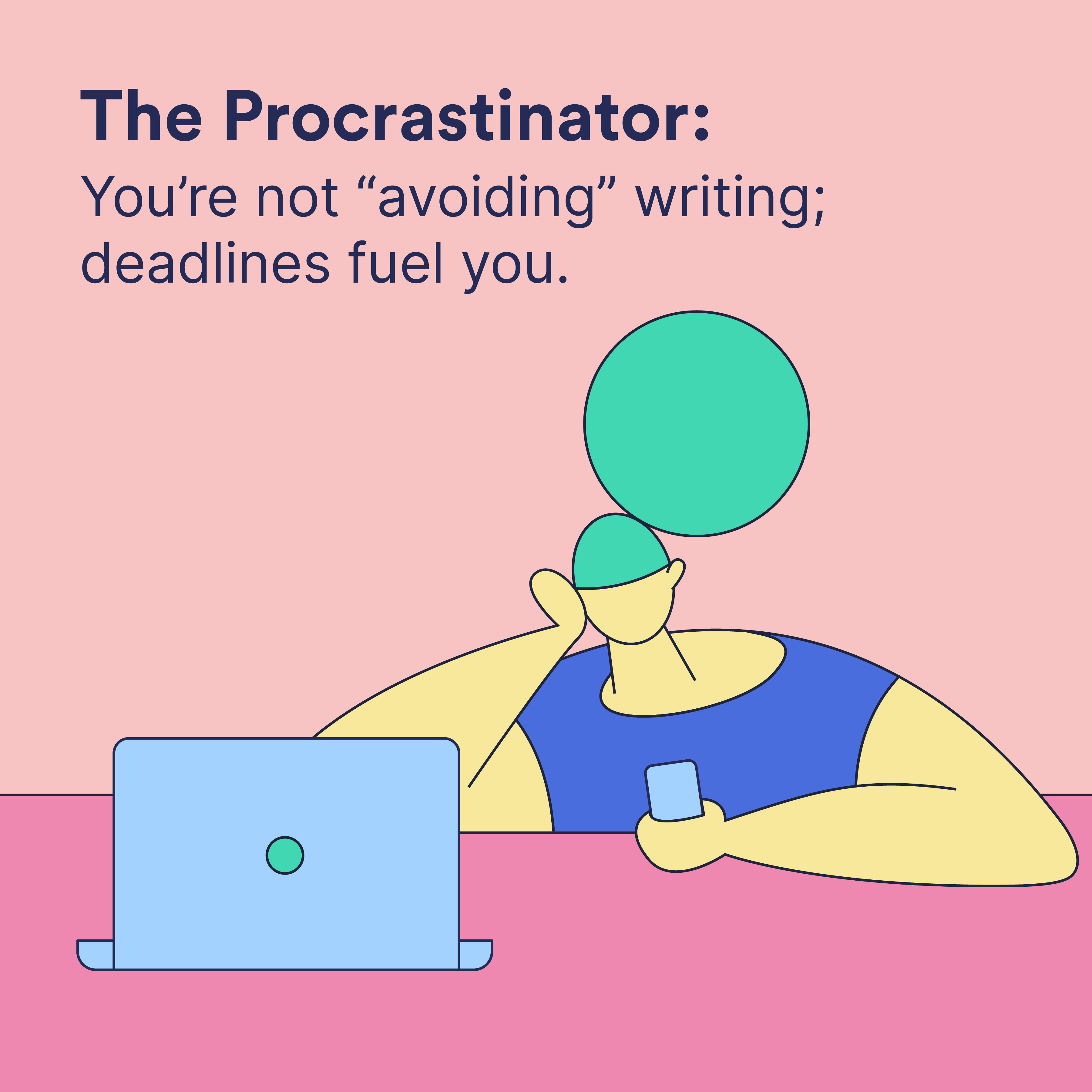Il loro profilo: non è che stiano Vivono per il brivido della scadenza. Lo faranno sempre, ma sappi solo che il lavoro che vedi è stato completato pochi secondi prima di premere Invia, Condividi o Pubblica.
