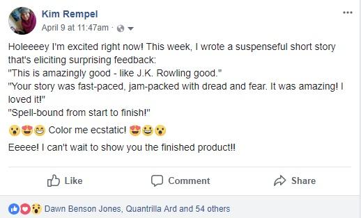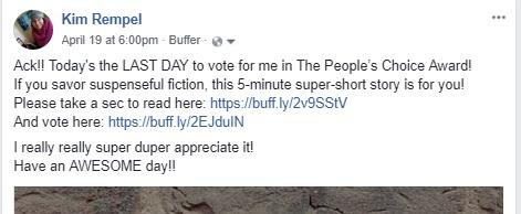 このゲスト投稿はKimberlyDawnRempelによるものです。 キンバリーは、著者がリーチを拡大し、強力なメッセージでより多くの人々を引き付け、影響を与えるのに役立ちます。 あなたの文章を売り込む方法についての洞察と方向性については、彼女のFacebookグループであるMarketing-Savvy Authorpreneursに参加するか、彼女の無料のリソースである14 Ways to Leverage Your Book forMoreSalesを入手してください。 キンバリーは、春のライティングコンテストでリーダーズチョイスアワードを受賞しました。 おめでとう、キンバリー!