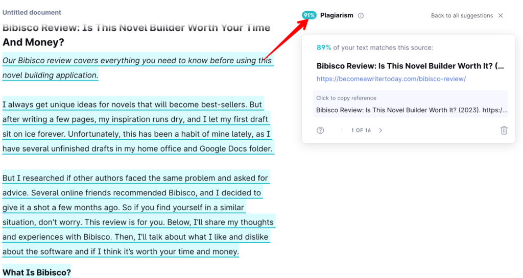 Paperpal と Grammarly は、AI アルゴリズムを利用してさまざまな書き込みエラーを検出するアプリケーションを作成しています。 Paperpal と Grammarly の両方が盗作スキャナーを提供しているのが気に入っています。 これにより、学生は盗作の罰則から保護されるため、学生にとっては実用的な選択肢になります。 Paperpal または Grammarly Web アプリにアクセスし、テキストを貼り付け、盗作がないかスキャンします。