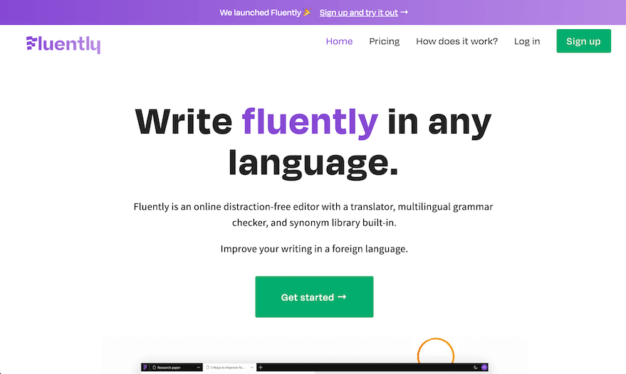 Fluentlyは、多言語翻訳者、文法チェッカー、およびシソーラスが組み込まれた、気を散らすことのないオンラインテキストエディターです。 母国語で書きながら外国語で文書を作成するために使用できます。 トランスレータは実際のエディタと連携して動作するため、最終結果をリアルタイムで簡単に確認できます。 42の言語をサポートするLanguageTool文法チェッカーとの統合があります。 シソーラスは21言語の同義語をサポートしています。