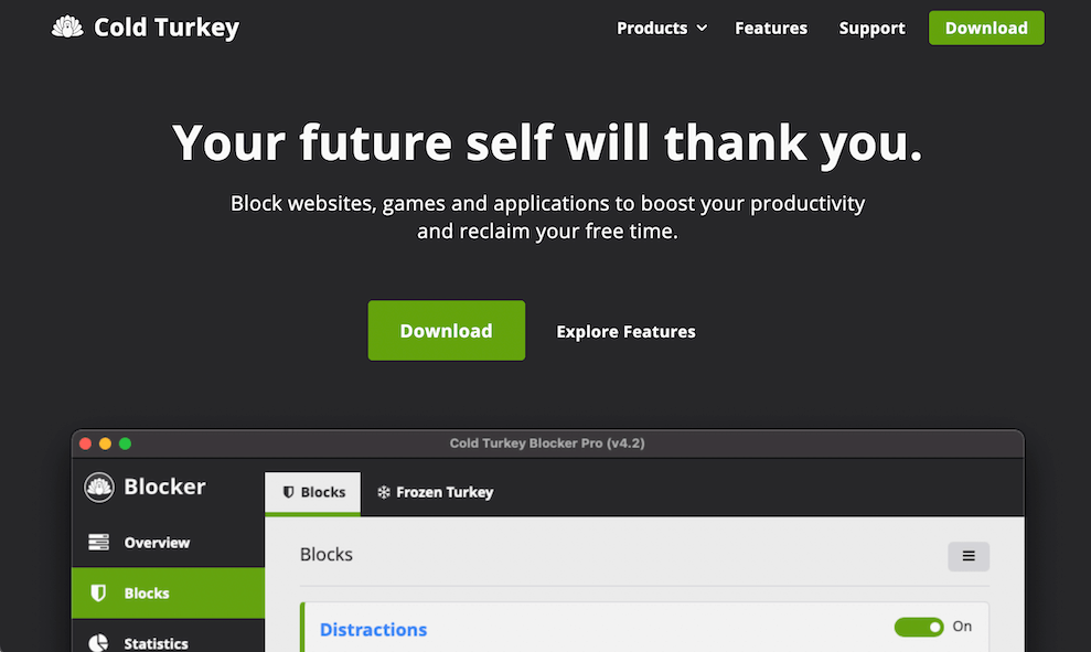 コールドターキーでは、作業中の現在のドキュメントのみを使用できるようにするだけで集中できます。 所定の期間、特定のWebサイトへのアクセスを制限またはブロックします。 実際、必要に応じてインターネット全体をブロックすることができます。