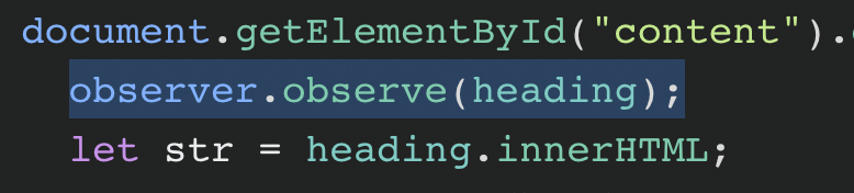 먼저 "observer.observer(heading);"를 추가합니다. 이전에 구현한 코드 시작 부분에 정확한 위치는 스크린샷을 참조하세요.