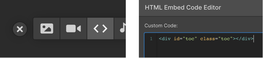 CMS 페이지의 아무 곳에서나 특정 ID로 ToC용 div를 만듭니다.