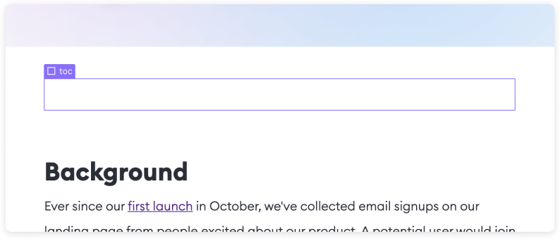 우리는 Notion의 목차 요소의 단순함이 마음에 들었으므로 이를 벤치마크로 사용했습니다.