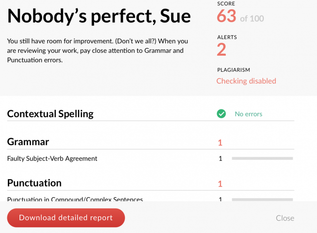Mimo to są dobrym punktem wyjścia, aby dowiedzieć się, jakich umiejętności gramatycznych będziesz potrzebować ćwiczyć, i usprawnić swoje zdania. Ponadto mogą zaoszczędzić czas — czas, który możesz poświęcić na więcej pisania!